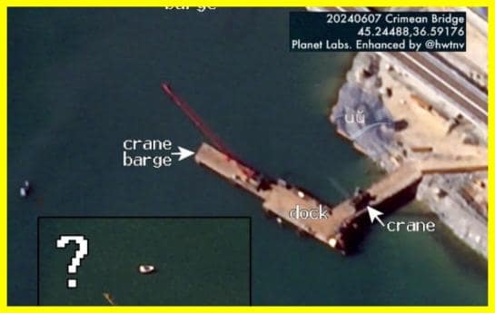 Російські окупанти почали будувати бонові загородження біля південно-східній частині Керченського мосту