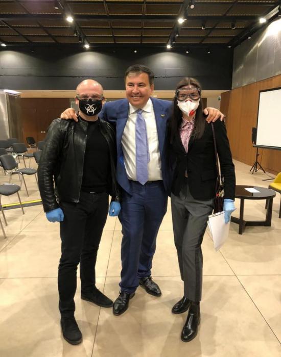 Ексголова Одеської обласної державної адміністрації Михайло Саакашвілі прийшов на зустріч з фракцією «Слуга народу» з пришпиленим до піджака значком з українським прапором, який був перевернутий догори ногами.
