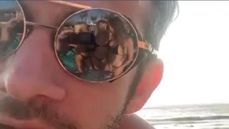 Але чоловік зовсім не подумав про те, що відбивається у нього в сонцезахисних окулярах — а там була група дівчат в купальниках.