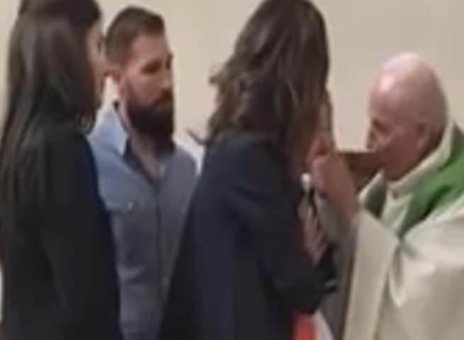 В конце ролика отец малыша вырывает его из рук священника, который не кажется раскаивавшимся за свое поведение. Пастор даже немного сопротивлялся, чтобы удержать ребенка.
