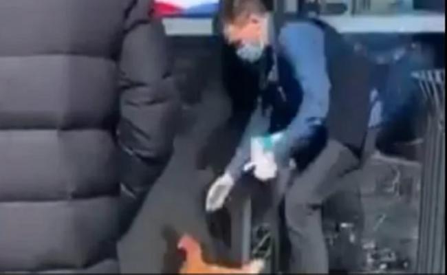 На відео видно, що птахові не подобаються такі прогулянки і увага натовпу — вона всіляко намагається втекти від господаря і виривається, коли той бере її на руки.