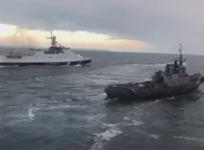 «МВД Украины спецсредствами получило доступ к видео провокации — тарана российского пограничного корабля «Дон» Украинские судна. Перехвачено видео снято российскими служащими, слышны команды — это пойдет доказательством в международный суд! Агрессия! Объединяемся! Ожидаем реакции дружественных стран!»