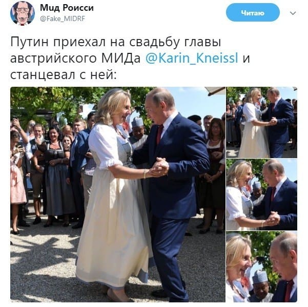 Главная страница *** КУРЬЕЗЫ *** В сети публикуют жесткие фотожабы на танец Путина на свадьбе у главы австрийского МИДа