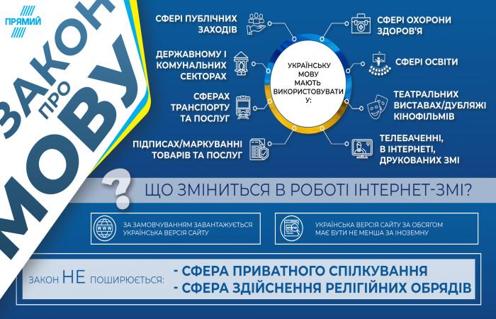 Нагадаємо, 16 липня 2019 року на Україні вступив в силу закон про державну мову. Дія закону про українізацію не поширюється лише на сферу приватного спілкування та здійснення релігійних обрядів.