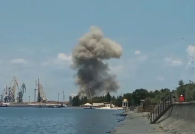 Фото та відео з окупованого Бердянська, де після обстрілу зазнав руйнування порт. Повідомляється як мінімум про шість вибухів.