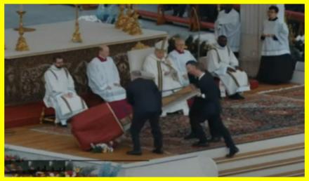 During the Easter Mass in the Vatican near Pope Francis, an icon of Jesus Christ fell down. The corresponding video was published online