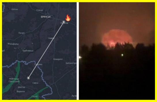 It is reported that the Russian arsenal of 1046 logistics center in the Bryansk region was hit at night.
