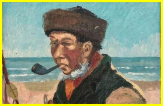 Картина із зображенням рибалки, що лагодить сітки, виконана в тому ж стилі, як і багато інших творів художника.