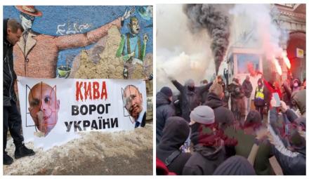 «Кива Пи@@рас!»: Нацкорпус фаерами и дымовыми шашками заблокировал офис партии ОПЗЖ. Видео