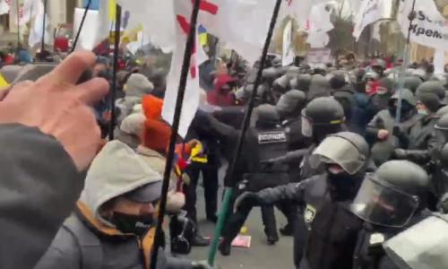 Ранішні бійки під Радою: Трапилася бійка поліції з підприємцями мітингувальниками. Відео