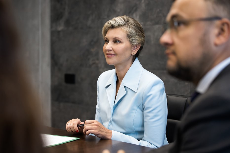 Для мероприятия супруга президента Владимира Зеленского выбрала костюм со светло-голубым жакетом, но больше всего внимание привлекла ее новая прическа.