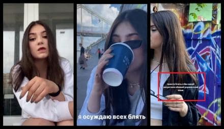 «Еще одна а-ля блогер (399 подписчиков) решила хайпонуть на теме украинского языка. На видео — 18-летняя Диана Калеганова из Ирпеня. За свои слова извиняться (пока что) не собирается», — подписали видео в телеграм канале.