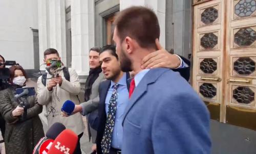 Між депутатами Олександром Юрченком та його колегою, колишнім представником фракції «Слуга народу» Гео Леросом, сталася сутичка під стінами Верховної Ради.