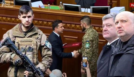 Среди тех, кто получил отличие доброволец и командир 1-й штурмовой роты ДУК «Правый сектор» Дмитрий Коцюбайло. Он первым среди добровольцев стал Героем Украины.