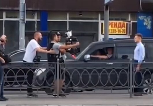 Однак процес знімання був перерваний через проїжджачих повз водіїв, які почали викрикувати «Гончаренко півень». Відео інциденту було розміщено в Telegram-каналі Шептун.