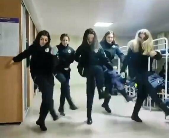 Так п’ятеро дівчат — майбутніх поліцейських станцювали в гуртожитку під пісню «Наколочка» групи «Воровайки», відомої виконанням тюремного шансону.