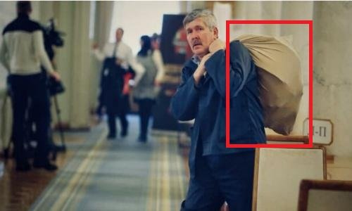 На знімку зображений чоловік з вусами, який кудись несе мішок в будівлі парламенту. До речі, фото опублікував Ян Доброносов.