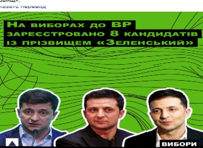 Голова ЦВК Тетяна Сліпачук заявила, що Центральна виборча комісія зареєструвала 8 кандидатів з прізвищем Зеленський. Про це повідомляє на своїй Facebook-сторінці Громадянська мережа «Опора».