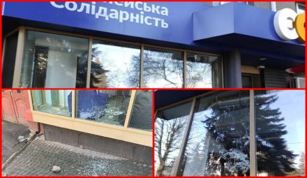 В Рівному невідомі поглумилися над Офісом партії «Європейська Солідарність» розбивши шибки у вікні приміщення.