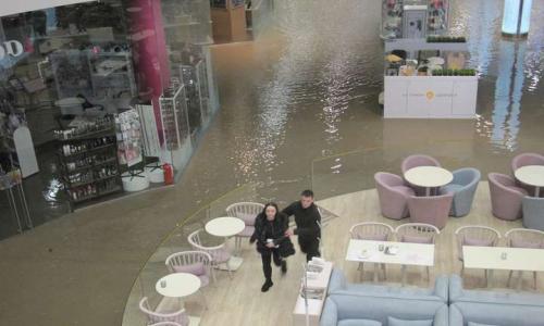 Окріп з системи водопостачання потрапив в торговий центр. Особливо сильно залило перший поверх ТРЦ, а також магазин «Ашан» на підземному рівні. Відвідувачів і персонал ТРЦ евакуювали. Рятувальники кажуть, що особисто винесли на руках п’ятьох людей.