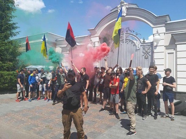 «Палають шини і фаєра»: Націоналісти закидали фаєрами будинок Порошенко