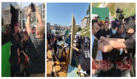 Полиция жёстко задержала членов «Нацкорпуса», которые валили декорации на Аллее Героев Небесной Сотни