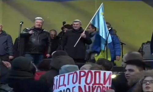 Екс-глава держави виступив перед присутніми на мітингу проти «капітуляції» напередодні зустрічі «Нормандського формату», яка запланована на завтра.