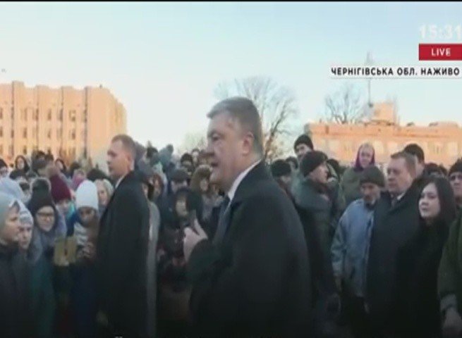 Петро Порошенко, пребывал 28 ноября с рабочим визитом на Черниговщине, не стал отвечать на вопрос местного жителя о повышении пенсий, “натравив” на него свою охрану.