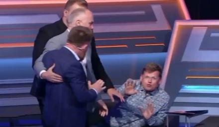 Депутат подошел к Розенко – и в этот момент в студии завязалась потасовка, что бы их разнять к ним бросились депутат от «ОПЗЖ» Нестор Шуфрич и ведущий телепрограммы.