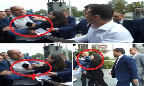 Прес-секретаря президента України Володимира Зеленського Юлію Мендель, звинуватили втому що вона відштовхнула журналіста Сергія Андрушка, перешкодивши таким чином поставити запитання Президенту України.