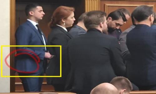 Першим хто начебто помітив охоронця з «зброєю» зауважив позафракційний депутат Сергій Рудик: