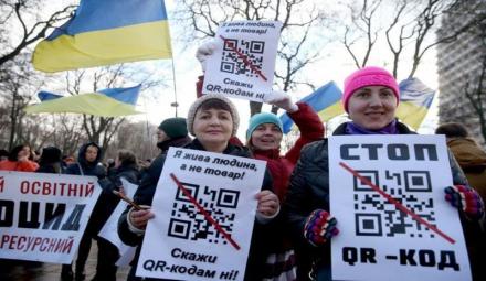 QR-коды с плакатов активистов антиваксеров, который сегодня прешел в Киеве, ведут на сайт партии «Единая Россия»