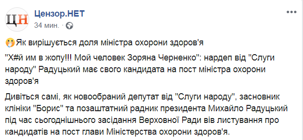 Ново избранный депутат от партии «Слуга народа», основатель клиники «Борис» и внештатный советник президента Украины Михаил Радуцкий прямо на заседании Парламента Украины вел смс переписку о кандидатах на пост главы Министерства здравоохранения.