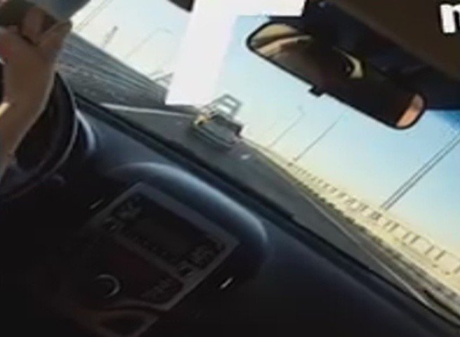 На видео заметно, что девушка за рулем совсем не следит за дорогой и снимает видео на телефон. При этом автомобиль двигается на довольно высокой скорости.