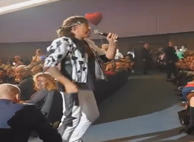 Глядачі звернули увагу також на дивну поведінку самого Леонтьєва. Він виривав квіти з рук і тут же кидав їх охоронцю.Камери зафіксували незграбний момент з юною фанаткою народного артиста і його охоронця.
