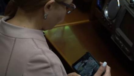 Народна обраниця зосередилася на телефоні, коли обговорювався законопроєкт про безпеку на дорогах.