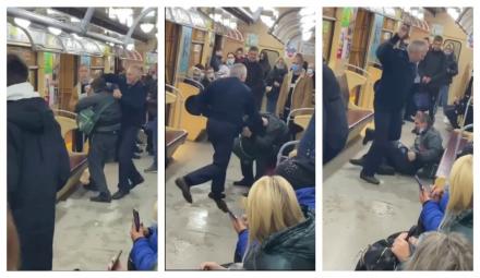 Машинист метро в Харькове, прямо в вагоне проучил парня, который приставал к другим пассажирам и распивал пиво прямо из бутылки.