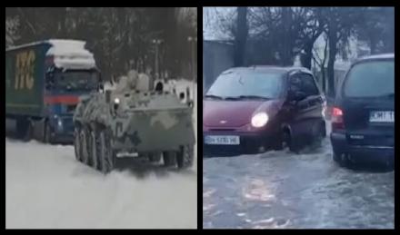 Погодный КОЛЛАПС: В Киеве вывела на дороги бронетехнику, а Одесса потонула с потеплением. Видео