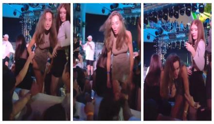 Девушке отказали в просьбе и за это она облила водой поклонниц Басты за столом. Облитая дама плеснула из бокала в ответ, бросила в обидчицу этим же бокалом и нанесла несколько ударов девушке внизу.
