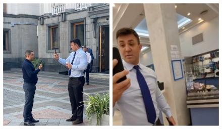 После этого депутаты вышли на улицу и как настоящие блогеры начали ругаться на камеры.