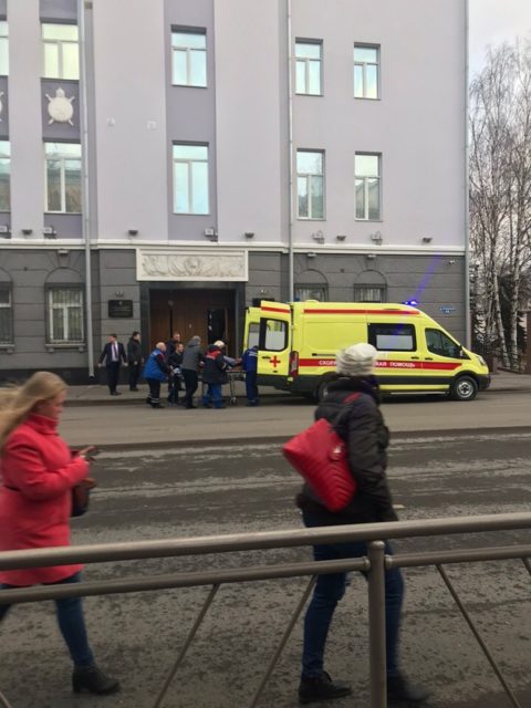 Сейчас вся территория происшествия оцеплена, проводятся обследование на предмет взрывоопасных веществ. Взрыв произошел между дверями, где стоит рамка металлоискателя. Погибший был рядом. Потому что его выбросило на выход взрывной волной. Еще один человек пострадал. Скорее всего, это охранник. Его увезли на «скорой помощи». У него вся голова была в крови. Он был без сознания. Погибшего тоже увезли с места, — рассказывают очевидцы.