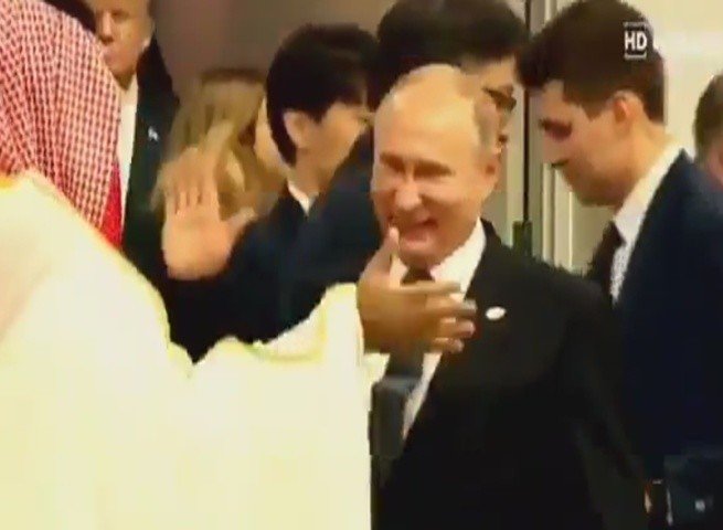 Российский президент Владимир Путин на саммите G20 весело поздоровался с наследным принцем Саудовской Аравии, которого обвиняют в причастности к убийству Джамаль Хашкаджи.
