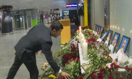 «Після закінчення робочої наради з питань, пов’язаних з катастрофою українського літака авіакомпанії МАУ в Тегерані, Володимир Зеленський поїхав в аеропорт «Бориспіль» з метою вшанувати пам’ять жертв трагедії. Там глава держави поклав квіти до фотографій загиблих», — сказано в повідомленні.