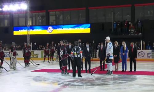 Володимир Зеленский вкинув шайбу в ворота нової Льодової арени в Маріуполі, побажав хокеїстам успіху в матчі та нових перемог.