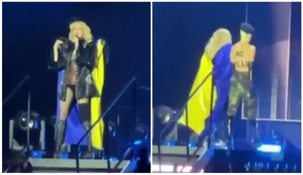 Славнозвісна співачка Мадонна на концерті в Лондоні обернулася жовто-синім прапором.