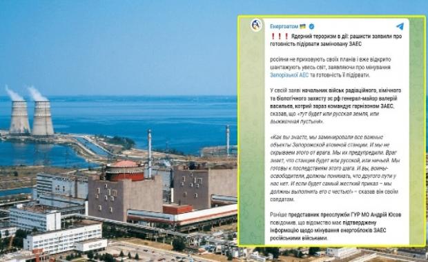 “У своїй заяві начальник військ радіаційного, хімічного та біологічного захисту з РФ генерал-майор Валерій Васильєв, який зараз командує гарнізоном ЗАЕС, сказав, що “тут буде або російська земля, або випалена пустеля”, – повідомляє Енергоатом.