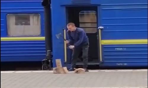 Головна сторінка *** УКРАЇНА *** Провідник вагону «Укрзалізниці» який рубав дрова на пероні «підірвав» мережу. Відео