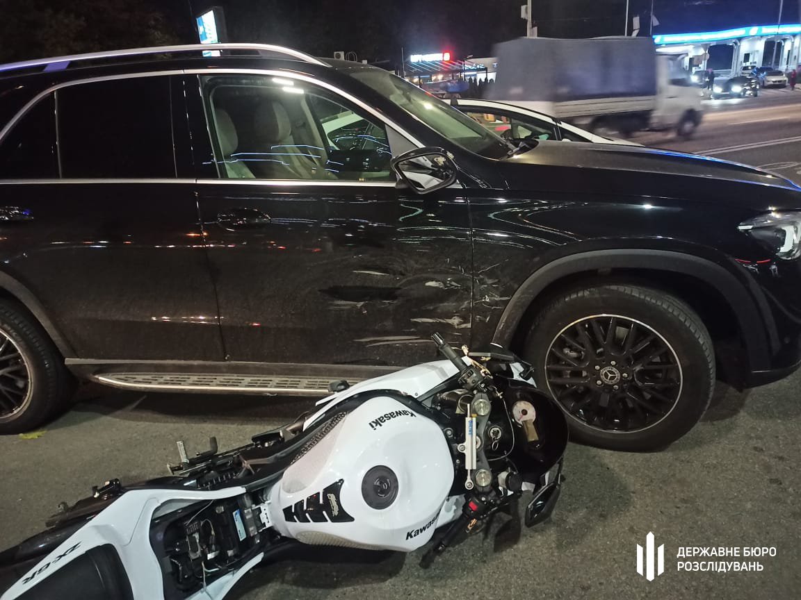 У Києві суддя на автомобілі Mercedes-Benz GLE 450 зіткнувся з неповнолітнім на мотоциклі Kawasaki. Про це повідомили в пресслужбі ДБР.