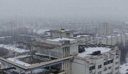 В річницю російського вторгнення в столиці Білорусі над однією з багатоповерхівок майорить жовто-блакитний прапор.